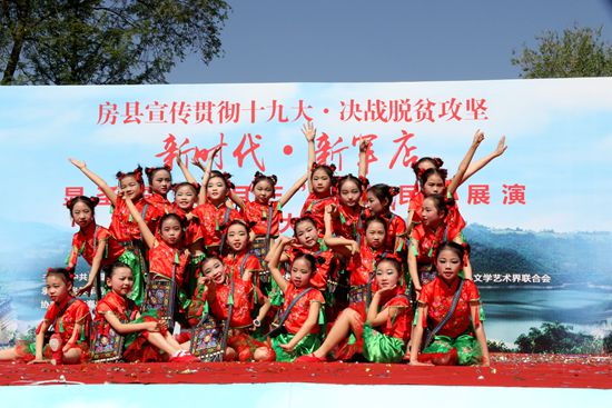 演出在古镇舞龙表演《龙腾盛世》中拉开帷幕。20余个民间文艺分会、组织和个人自行创作的40个节目渐次展开。其中音乐快板《十九大精神放光芒》、表演唱《山乡盛开脱贫花》《扶贫路上谱新篇》《军店振兴大战略》、舞蹈《党的恩情永不忘》《和谐大家园》《美丽军店我家乡》《爷爷奶奶和我们》《走向复兴》《火火的中国梦》《祖国你好》《幸福小康》、小品《道德新风从我做起》、三句半《扫黑除恶保安宁》等节目,生动地讲述和由衷地表达了在精准扶贫和乡村振兴、美好家园建设中,全县人民合力攻坚、志在小康、共建美好家园的的故事、情感和美好期盼。此外,本次活动邀请外地表演团队演出的魔术、杂技和演唱等节目,也成为庙会一大亮点。