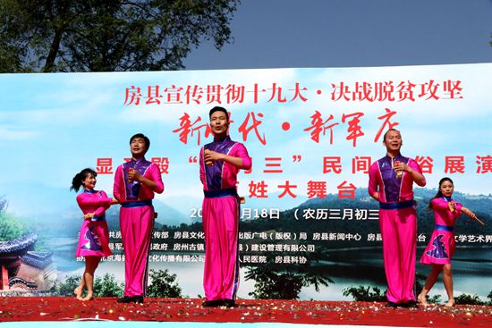 “三月三,一天年。”农历“三月三”是军店传统的庙会赶集日。今年的庙会以“新时代·新军店”为主题,展现出新时代中的房县,在党的领导和精准扶贫精准脱贫合力攻坚下,正呈现出日新月异的变化。