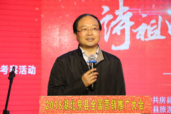 蔡贤忠在活动致辞中对参会的各方嘉宾表示欢迎,并详细介绍了我县历史文化、诗经文化、帝王文化、神秘野人文化及独特的自然山水风光、特色旅游产品等。他说,房县围绕生态文化旅游健康城发展定位,以文化传承和自然山水为依托,大力发展参与式、开放式旅游,借助独特的区位优势和旅游资源优势,打造“武房神”旅游一体化道路,房县一肩挑“两山(武当山、神农架)”,作为旅游体验休闲目的地,承“两山”辐射,与“两山”互补,同“两山”共融,想“两山”不能想、做“两山”不能及,着力构建“一城三片区两带”全域旅游体系。