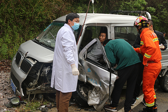 今日房县网讯 通讯员徐源祥 报道:4月23日下午16是54分,位于湖北省十堰市房县土城镇花楼门村一组209国道一辆SUV小车和一辆小型厢式货车相撞,有人员被困,急待救援。接到报警后,房县消防立即出动一台车、8名官兵赶往现场施救。