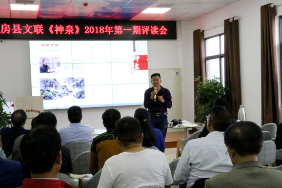在《神泉》评读环节,县文联主席唐敏,作协主席西域,作协秘书长、《神泉》执行主编陈立丽对《神泉》2018年第1期的编辑方针和思路、文章选择、版面安排等作了介绍。与会者们本着关心爱护、促进提高的目的,对杂志内容进行了探讨及建议,并达成共识,即把质量作为文学创作和《神泉》编辑的灵魂,创精品,出名刊,打造经得起时间检验的佳作,为房县人民提供宝贵的精神财富。会议还号召,县作协会员和文学爱好者们多着眼基层精准扶贫领域,书写时代故事,用文学润物细无声的力量,助力脱贫攻坚。