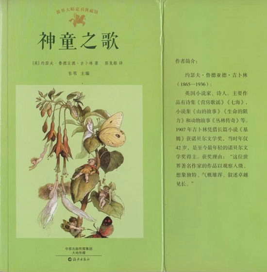 《神童之歌》共收录了英国诺贝尔文学奖获得者吉卜林(1865年-1936年)的61首脍炙人口的诗篇,分别选译自他的几部诗集和儿童文学名著。诺贝尔文学奖评委盛赞吉卜林“这位世界知名作家的作品以观察入微、想象独特、气概雄浑、叙述卓越见长。”儿童是世界的未来。吉卜林对未来的热爱,最集中地体现在他对儿童心理的关注和对新生事物的歌颂。他那独具一格的儿童诗歌激情奔放,简洁凝炼,视野开阔,精彩纷呈,充满了异国情调,洋溢着生活的情趣,蕴涵着哲理的光芒,使人读了能够从中受益,获得快乐。