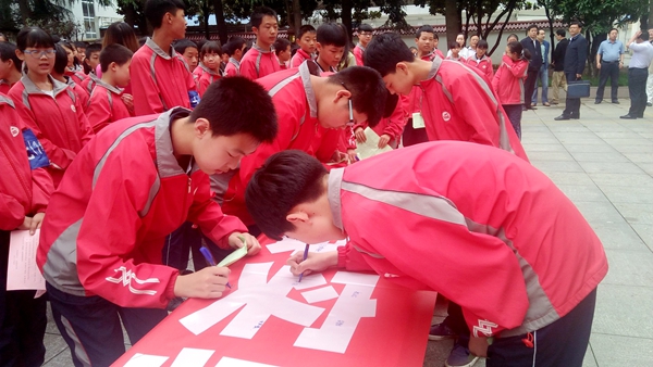 活动向全体师生发起“拒绝第一支烟,做不吸烟新一代”的倡议,呼吁同学们从我做起,从在校期间做起,从身边做起,从今天做起,踊跃参与全社会禁烟宣传活动,为创建无烟教室、无烟校园、无烟家庭,创造健康美好的生存环境做出自己的一份努力。最后,县实验中学全体师生纷纷走上前台,用在签名条幅签名的具体行动许下了“拒吸第一支烟,做不吸烟新一代”的庄严承诺。