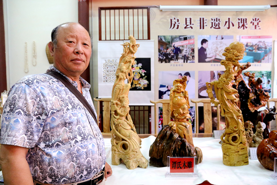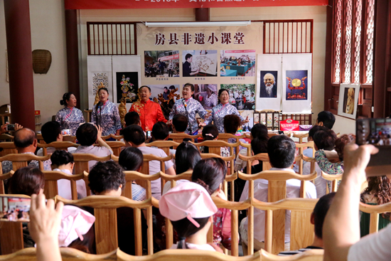 本次活动邀请了尹吉甫传说项目传承人刘光友、谭氏木雕项目传承人谭荣志、房县皮影戏项目传承人刘兴龙、房陵烙画项目传承人许光建等省、市、县各级非遗项目传承人,现场演唱诗经民歌,表演皮影戏,展示木雕、烙画、剪纸等工艺作品,还特邀湖北省工艺美术刺绣专业委员会秘书长、汉绣大师沈昌会带来精品汉绣作品,邀请集邮分会和集邮爱好者展示邮票藏品。参观者们与非遗作品及非遗传承人亲密接触,学唱诗经民歌,体验皮影戏,充分感受非遗传统工艺的迷人风采,称“大开眼界”,并大呼过瘾。