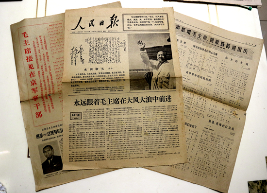 王林顺收藏的报、刊集中在“文革”时期,占总收藏量的一半左右。1960年出生的他,对那个特殊的年代,只有朦胧的童年记忆。如今面对那些特殊的题材,他更多的是好奇,或许还有对童年的情感追溯。他收藏的“文革”周边物件里,还有250余枚毛主席纪念章,各种画报、日历、照片等。