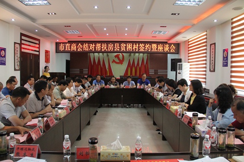 座谈会上,各市直商会代表和结对帮扶的村负责人就今后开展产业对接、招聘用工、帮难解困等问题进行了深入交流,并分别与房县窑淮镇陈家铺村、白鹤镇东浪村等五个村现场签订结对帮扶意向。