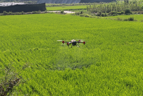 与会人员观摩土城镇白鸡村水稻病虫综合防控现场