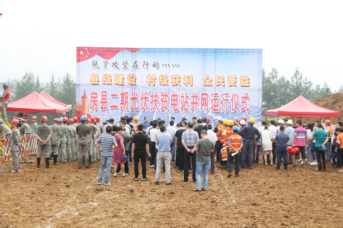 今日房县网讯 记者 王玮 报道:6月30日,在房县二期光伏扶贫电站并网运行仪式现场,县委副书记、县长纪道清宣布并网指令后,红塔镇邓营村光伏扶贫电站10台并网配电柜开关依次完成合闸通电操作,标志着房县二期光伏扶贫电站顺利实现并网发电,全县305个村实现光伏扶贫项目全覆盖。