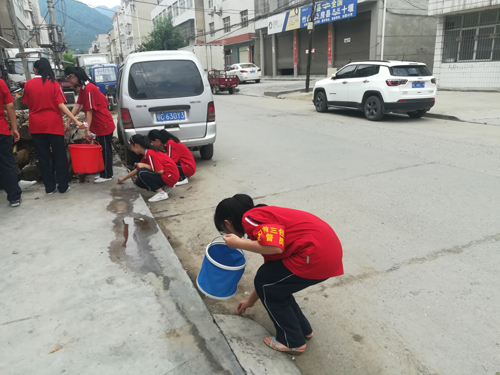 今日房县网讯 通讯员 余清湖 报道:6月29日,房县城关四中团委倡议“门前三包”公益劳动,引导市民做好“门前三包”。