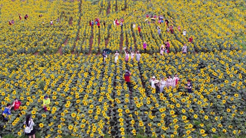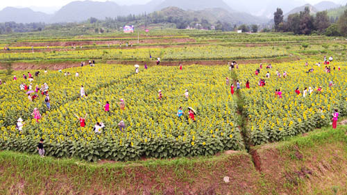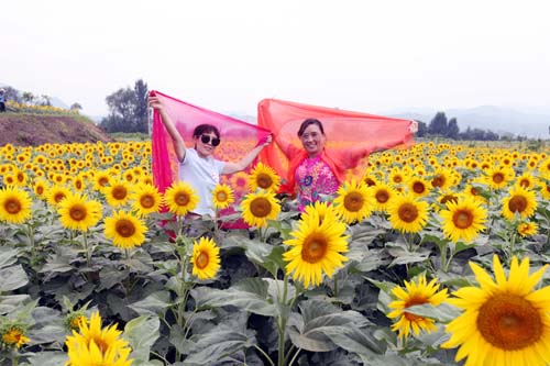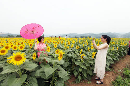日前,化龙堰镇高桥、汤峪、桃园、高川等村的2000多亩油葵花竞相开放。 7日至8日,十堰、竹山以及化龙周边乡镇的1500多名游客来到这里参观游览,拍照留念。近几年来,化龙堰镇积极引导农民种植油葵、油菜,每年当油葵花、油菜花开花的季节,就吸引了县内外大批游客前来游览赏花。