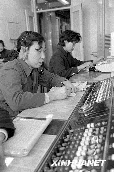 北京市电信管理局无线寻呼通信系统中心,该中心从1985年11月1日正式开通使用。这是服务台话务员正在为用户服务。(图片来源:新华社)