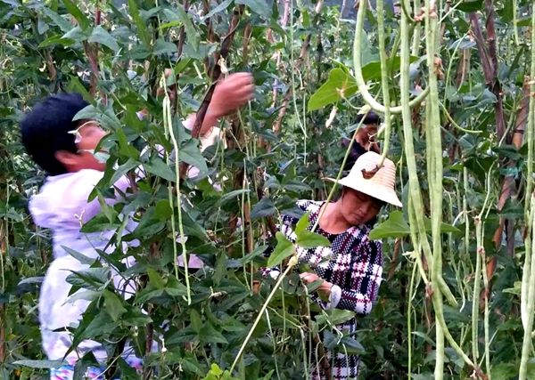 19日,笔者在马家河村看到,豇豆喜获丰收,10多名村民们正在采摘、装车。截止日前,马家河村共采摘销售豇豆2万公斤,销售额达到4万元,真正实现了农业增效、农民增收。