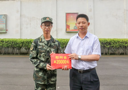 纪道清为武警中队官兵送上慰问金