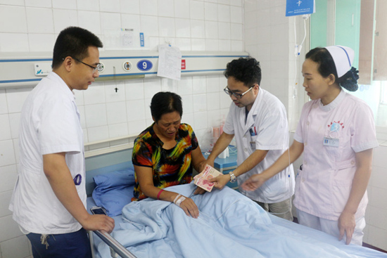 据她的管床医生孙武介绍,8月3日,彭义芝以“支气管扩张伴感染”收入呼吸内科。谈起送红包的事,59岁的彭义芝有些不好意思,“我来呼吸内科住院快半个月了,孙医生一直很关注我的病情,没有这么负责任的医生,我的病也不可能这么快就治的好啊!为了感谢孙医生,我就拿了500元钱给他,没曾想孙医生和张主任、王护士长一起把钱退给了我,我都不知道说啥好了。”