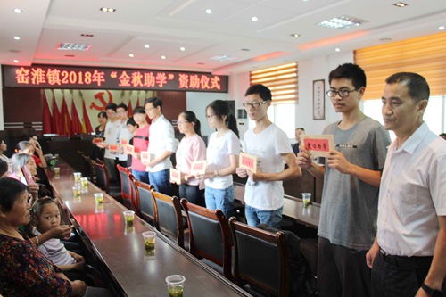 该镇党委书记杨奎对受资助的学子取得的优异成绩表示祝贺,并结合自身求学和工作经历,勉励受资助学生要立志高远、勤奋学习、勤俭节约,希望各位学子能胸怀感恩之心,满怀爱乡之情,用优良的品德塑造人生,用优异的成绩回报社会。以624分被湖南大学录取的大学生胡金波表示,将会把党和政府及各界爱心人士的深切关怀转化为感恩社会、立志成才的强大动力,将这份爱心传递下去,以优异的成绩感恩社会、回报家乡。