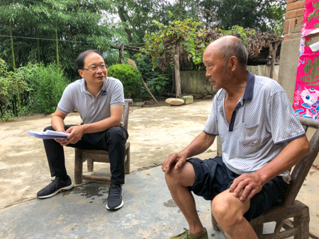 蔡贤忠在白鹤镇双河村贫困户夏明清家走访