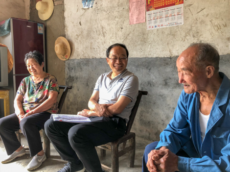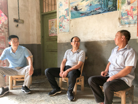 从雷冲村沿山而下,来到相邻的双河村。双河村距白鹤集镇18公里,是今年我县确定的重点脱贫出列村。入户走访中,蔡贤忠特意来到该村最贫困的户和有信访诉求的户,了解他们当前的生产生活情况和增收途径,真情倾听、认真梳理、客观回应解决群众信访诉求。该村二组贫困户邓长生因门前道路、门前稻场硬化、房屋改造等问题多次到镇、村反映个人诉求,蔡贤忠从政策红线、事实依据等方面,直面矛盾和问题,细致耐心的宣传讲解政策,对合理诉求当即给予答复解决,对不合理诉求晓之以理,做好解释。邓长生非常满意,表示将不再等靠要,珍惜各项帮扶政策,自力更生,通过勤劳脱贫。