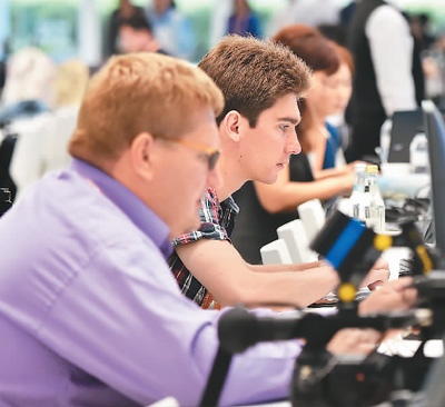 6月9日,在上合青岛峰会新闻中心,记者们专注工作。 |