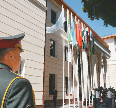 2017年6月15日,上海合作组织地区反恐怖机构执委会在乌兹别克斯坦首都塔什干举行印度和巴基斯坦国旗升旗仪式,迎接两个新成员的加入。 |