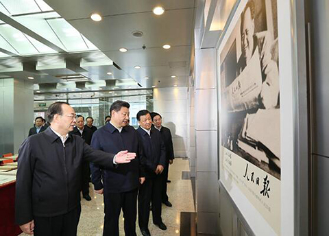 (2016年2月19日上午,中共中央总书记、国家主席、中央军委主席习近平来到人民日报社调研。新华社记者 兰红光摄)