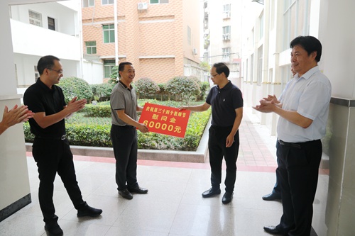 蔡贤忠向县实验小学教师们送上慰问金