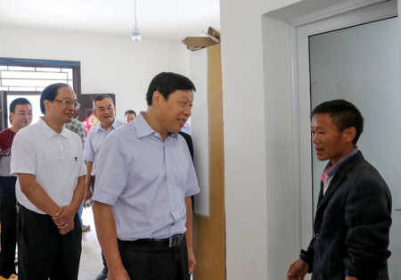 14日一大早,在五台乡红场村,张维国走进红场村党员群众服务中心,与镇村干部和驻村工作队详细交谈,了解全村扶贫工作进展情况。并前往红场村委会搬迁小区,走访了刘仁帽、孟光亮、李德平等已经搬迁入住的贫困户,询问他们搬迁前后的生活变化,以及现在享受了哪些扶贫政策。