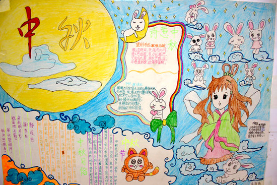 这次手抄报展览的主题为“感谢师恩、喜迎中秋”,学生们充分利用课余和周末时间搜集有关资料,整理内容,自己设计版面,自己画图。只见一份份手抄报图文并茂,或活泼、或深沉,或生动、或朴实,有的浓墨重彩,有的淡雅清爽,内容丰富、形式多样。