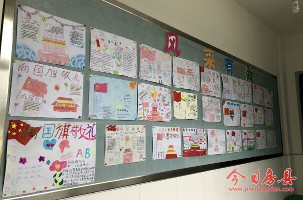线下“向国旗敬礼”活动也如火如荼开展。各校利用课间广播、升国旗仪式、班会等时间紧扣新中国成立69周年开展主题班会、演讲、征文、黑板报、宣传栏、歌咏演唱等多种形式的活动,开展升国旗、唱国歌、“我和国旗合个影”、观看红色影片等活动,增强未成年人对国家和民族的归属感、认同感,引导学生爱党爱国,培养实现“中国梦”的人生志向。