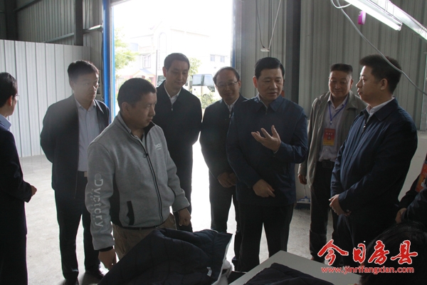 随后,王祥喜前往高桥村扶贫车间和上营村蔬菜基地,了解产业发展和农民增收情况。高桥村扶贫车间厂房500平方米,一期投入机械30台,二期拟再投入机械30台,主要生产服装,带动附近汤峪、桃园等村群众50余人就近就业,户均年增收10000元以上,解决了“挣钱”与“顾家”两难的问题。上营村蔬菜产业基地由房县北京商会投资建设,已建成200亩普通大棚;二期共投入1000余万元,建设阳光暖棚20个,春节期间可实现蔬菜直供北京,另建设露天蔬菜150亩。该基地共带动贫困户59户177人,通过土地流转、基地务工、入股分红,带动贫困户户均增收5000元。