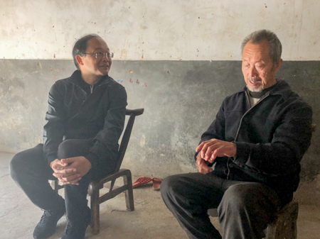 在双泉寺村,蔡贤忠与贫困户王明仁促膝交谈。王明仁今年65岁,发展了油牡丹、核桃等产业,还种了十几亩的白杨树。王明仁说,“现在政策好的很,我住院开刀4万多,报销了3万9,还有啥想法?村上号召做什么,我就干什么,现在产业发展的还不错,我就有一个愿望,想当村里的脱贫模范。”蔡贤忠对王明仁积极发展产业脱贫致富给予鼓励,勉励他好好干,争取早日当上模范。同时要求工作中要把扶贫与扶智、扶志相结合,在组织发动群众、激发群众内生动力上下功夫。