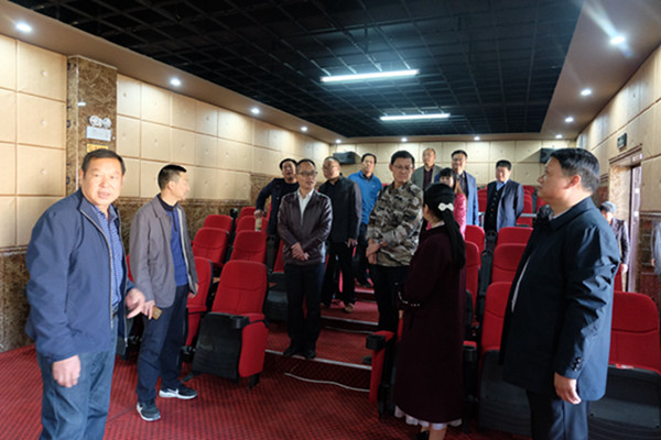与会人员参观伏溪村全县首个乡村电影院