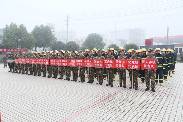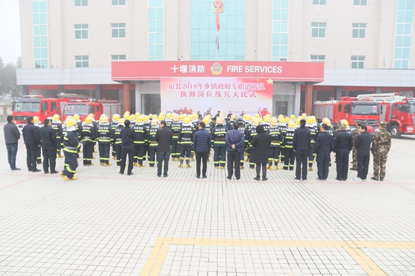 今日房县网讯 记者 陈锐 通讯员 余沛文 徐源祥 报道: 11月23日,房县政府举办乡镇政府专职消防队2018年度执勤岗位练兵大比武,全县20支乡镇政府专职消防队,共计84名队员参赛。