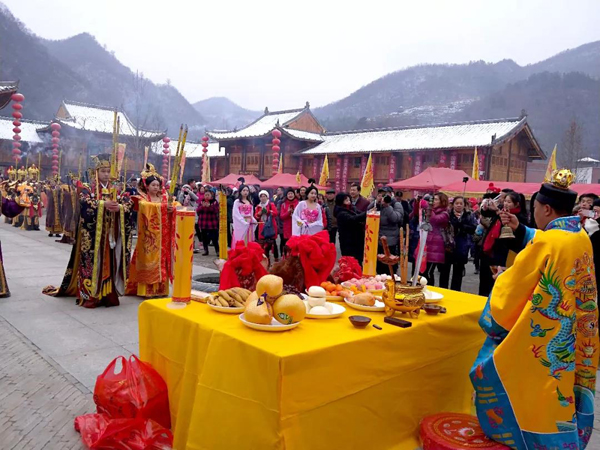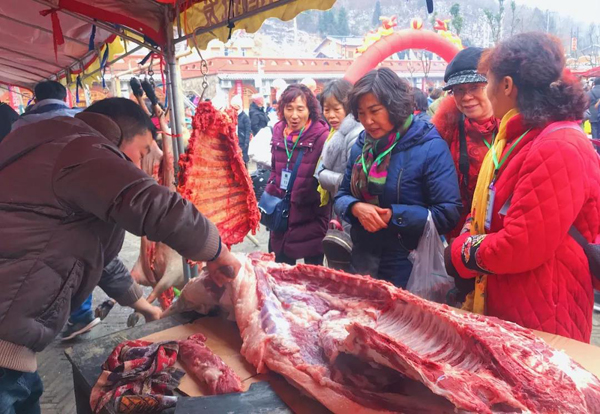 上午10时,伴随着《封酒大典》表演,首届土城年货节正式拉开序幕!湖北中青国旅集团工作人员和全场游客共同见证这一欢庆时刻!此次年货节以“告别转基因,回归绿色生态圈,跟随党中央精准扶贫行动的指示”为活动宗旨,着力打造一个展示房县企业形象、促进房县企业销售、宣传房县地方产品、沟通产销渠道、扩大消费需求、活跃市场的经济平台;也让前来的游客们都能购置到实惠、优质的湖北房县农特产品,共享千人年猪宴、切身感受这浓浓的乡土情怀。