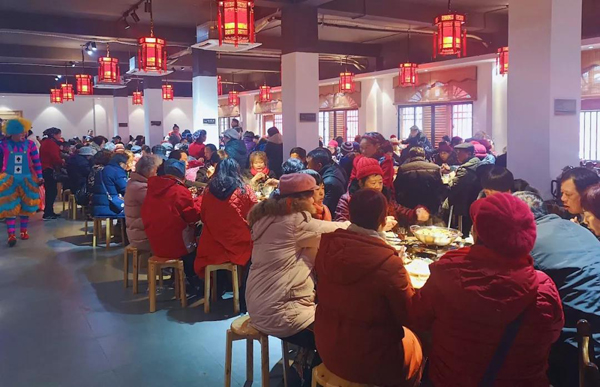 年猪祭祀仪式上,杀猪匠拉着披着红花的猪头登场,观众纷纷聚拢一同参与祭祀仪式,祈福来年平平安安,红红火火!随后香喷喷的年猪宴养生餐被陆续摆上餐桌,大家纷纷拿起筷子直奔主题。