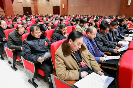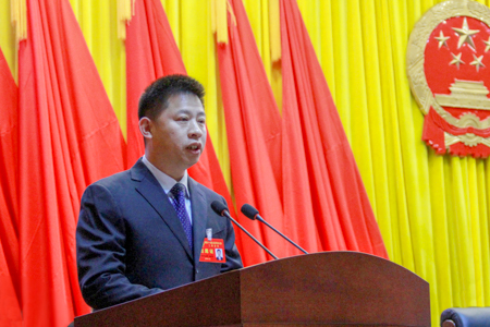 在热烈的掌声中,县长纪道清代表县政府作工作报告。报告共分三个部分:2018年工作回顾、2019年工作建议、持续打造实干政府。