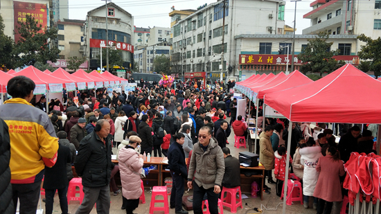 据悉,此次招聘会以“服务园区用工 助推精准扶贫 ”为主题,面向全县春节返乡农民工、建档立卡贫困群体和高校毕业生,招聘会将持续到2月15日(正月十一)。来自县内外110余家企业为就业人员提供涉及服务类、技术类、财会类等30余类工种,8500多个就业岗位,月工资水平从2000元-6000元不等。第一天上午,3500多名求职者现场对接,达成初步就业意向1800多人。