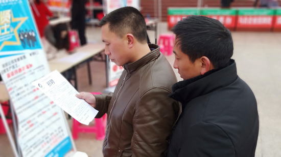 查看招聘简章(唐胜涛 摄)