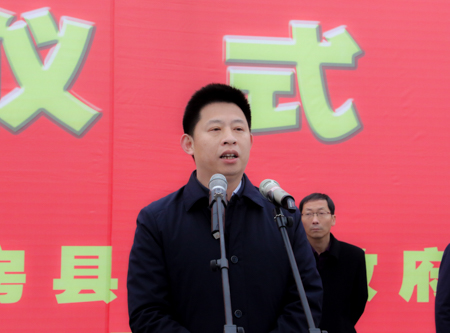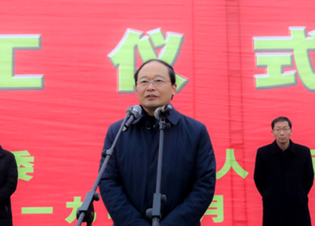 县委书记蔡贤忠宣布房县2019年第一季度重大项目暨纺织工业园项目正式开工。县委副书记、县长纪道清致辞。县委副书记肖大有,县人大常委会主任高明哲,县政协主席徐锦凤,县委常委祁国鹏、陈刚、高勇、阮登香、付必久等部分四家班子领导参加开工仪式,并共同为纺织产业园奠基。