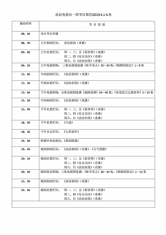 房县电视台一周节目预告(2019.4.1-4.7)-今日房县网-- 房县门户