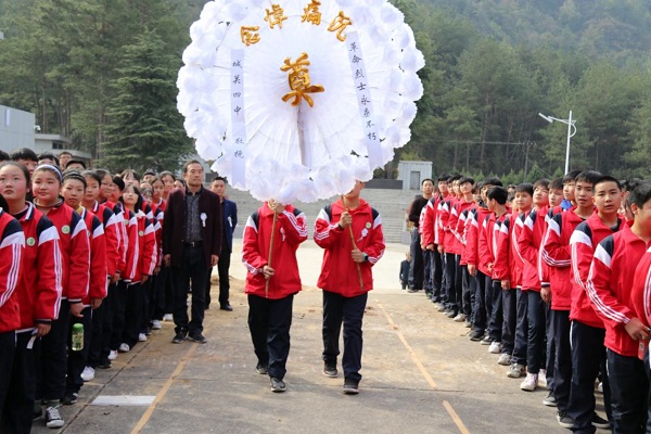 全体师生在庄严肃穆的革命烈士纪念碑前,举行了庄重的悼念仪式,向长眠于地下的革命先烈们默哀一分钟;学生代表向革命烈士纪念碑敬献花圈,表达他们的深深敬意和无限哀思;老师介绍了房县革命斗争史,讲述了雷天明、柳直荀等英烈故事,希望当代青少年继承先烈遗志,珍惜今天幸福生活,弘扬中华民族优良传统;全体学生集体宣誓,立志努力学习,报效祖国。学生们还认真观看了贺龙雕像、十八烈士墓等纪念碑,并研读墓碑上的铭文,了解英雄事迹。