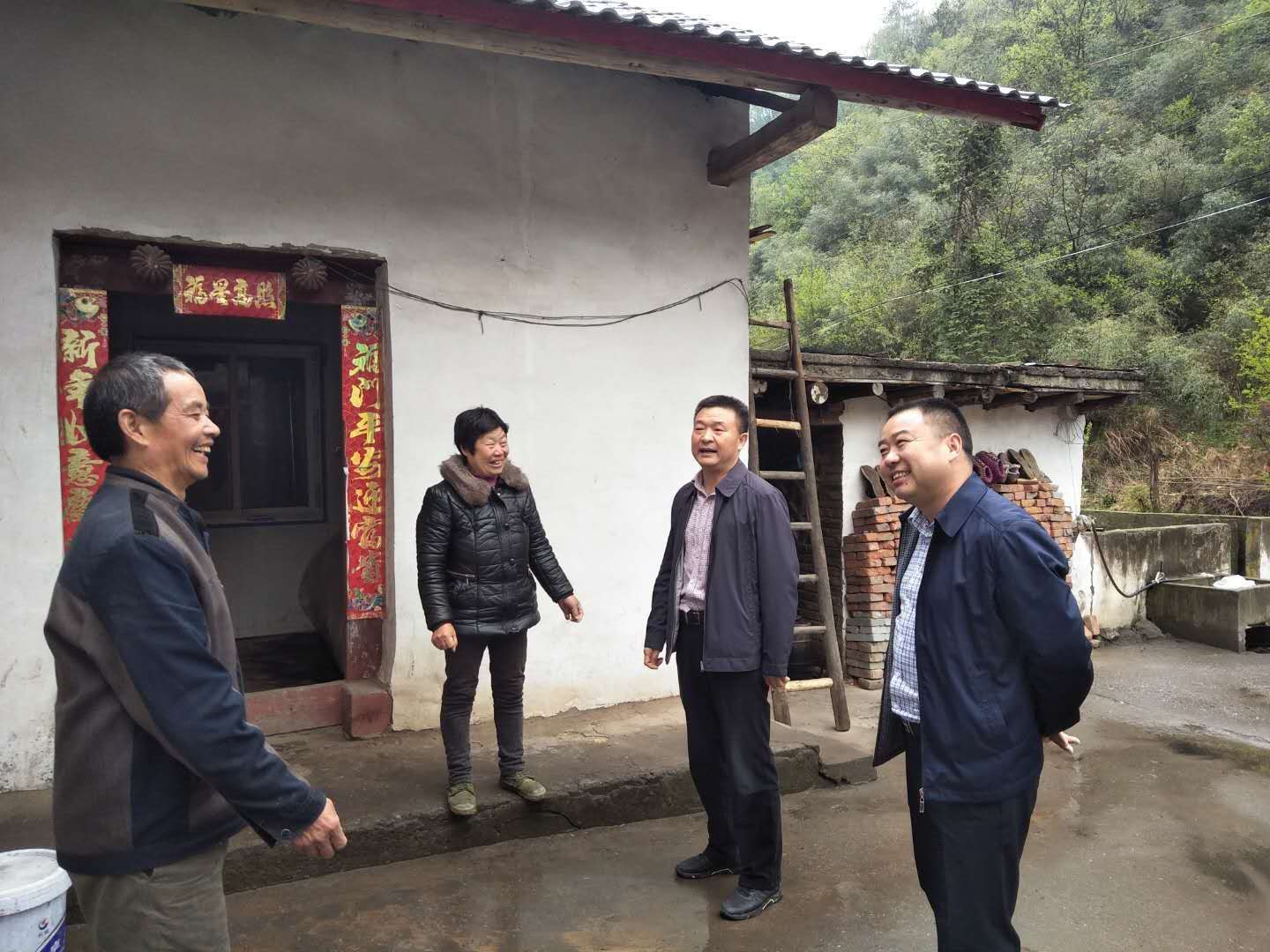 在界山村四组,肖大有与已实施危房改造的佘太芝、张宏正等危房改造户进行详细交谈,了解询问政策补助情况、仔细察看危房改造质量、“四好”创建等情况,并与驻村工作队和村干部交流贫困户“ABC”分类情况。