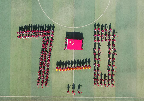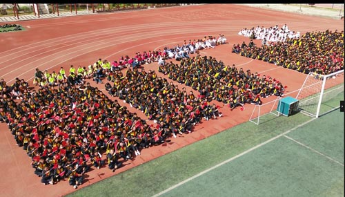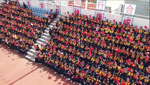 上午9点整,循着激越美妙的歌声,该校近3000名师生围绕宽阔平坦的操场席地而坐,做起了100余名录制《我和我的祖国》的“小小歌唱家”的忠实粉丝。录制中,只见“小歌唱家们”时而挥动着印有五星的鲜艳的小红旗,时而手提写有24字价值观的灯笼,时而直立着屏住呼吸、全神贯注的唱着歌曲,他们专心致志的样子,仿佛完全忘记了周围的一切,都如痴如醉的沉浸在自己的表演里。周围的师生一边欣赏,一边也跟着一起轻轻唱了起来,幸福和自信洋溢在每个师生的脸上,整个校园都笼罩在浓浓的爱国情里。