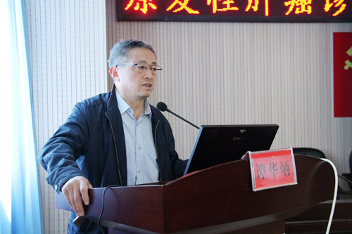 十堰市医学会肝病专业委员会主任委员谭华炳教授在授课