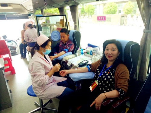 在献血活动现场,该校参与献血的人员个个精神饱满、热情高涨,他们有序等候医务人员登记、询问身体近期状况、量血压、抽验血。献血过程中,不管是男教师还是女教师,当粗壮的针头插入他们手臂静脉,殷红的鲜血缓缓流进血浆袋时,他们一个个的脸上都流露出了欣慰的笑容,因为他们都知道,这是病人的急救血,是生命的源泉。