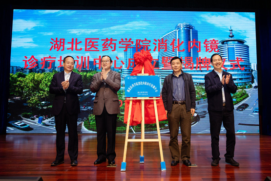 湖北医药学院党委书记涂汉军,湖北省消化病学会主委、华中科技大学同济医学院副院长、协和医院大内科主任侯晓华,华中科技大学同济医学院附属同济医院胃肠肿瘤研究所所长龚建平,市人民医院党委书记、院长钟森等领导和专家出席开幕式并致辞。十堰市人民医院副院长、消化疾病中心主任孙泽群主持。与会领导共同为湖北医药学院消化内镜诊疗培训中心揭牌并合影。