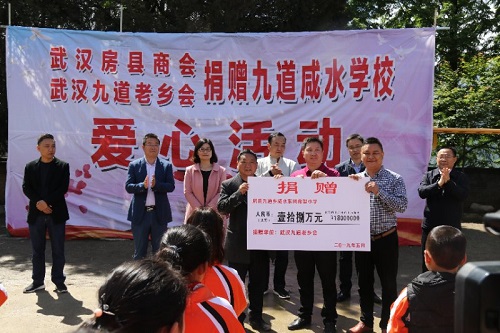 今日房县网讯 通讯员 程知金 报道:5月8日上午,武汉房县商会的企业家及九道老乡会外出创业成功人士一行18人,深入鄂西北边远山区九道乡,携手开展“恩馈母校公益行”捐资助学活动。