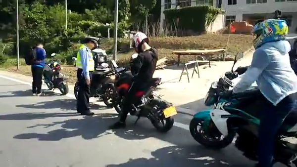 据了解,当天下午3时许,接群众举报,路上有十几辆摩托车车速非常快,极易引发交通事故,为消除这一交通安全隐患,交警大队立即对相关车辆进行安全检查。