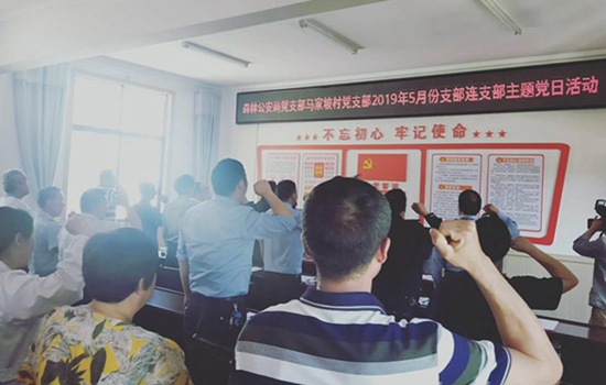 在马家坡村村委会上,县森林公安局局长刘化宇带领局、村党员重温入党誓词、领学党章,以精准扶贫切身体会给参会党员讲了一节生动的党课;同时学了习近平系列讲话精神、《精准扶贫领域形式主义、官僚主义“七种表现”》等相关文件。