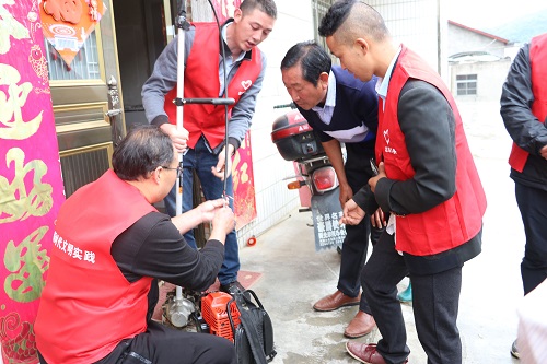 作为科普分队的农机技术小队,农机专家们来到农户家中为农机手们送技术、答疑解惑。卧牛观村主导扶贫产业为烟叶,农业机械的基础良好,几乎家家户户都有农机。农机技术小队为农户进行上门服务,得到了该组群众的一致认可。