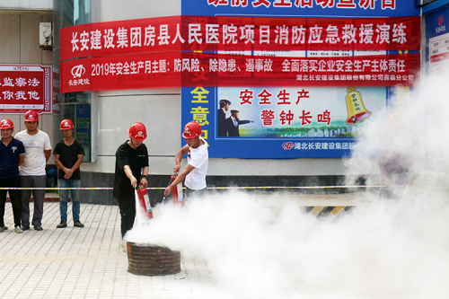 培训结束后,安全监察人员与参会人员分别在医院外科大楼和综合楼施工现场进行了模拟电梯故障应急救援演练和消防应急救援演练。